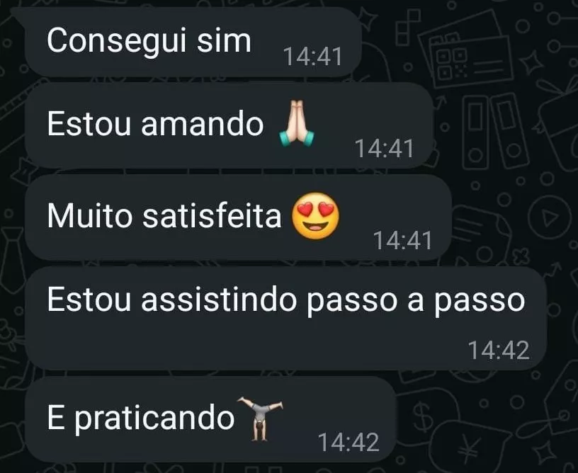Você terá acesso a um grupo exclusivo no WhatsApp, onde poderá tirar dúvidas, compartilhar sua prática e até enviar vídeos para receber orientações personalizadas.